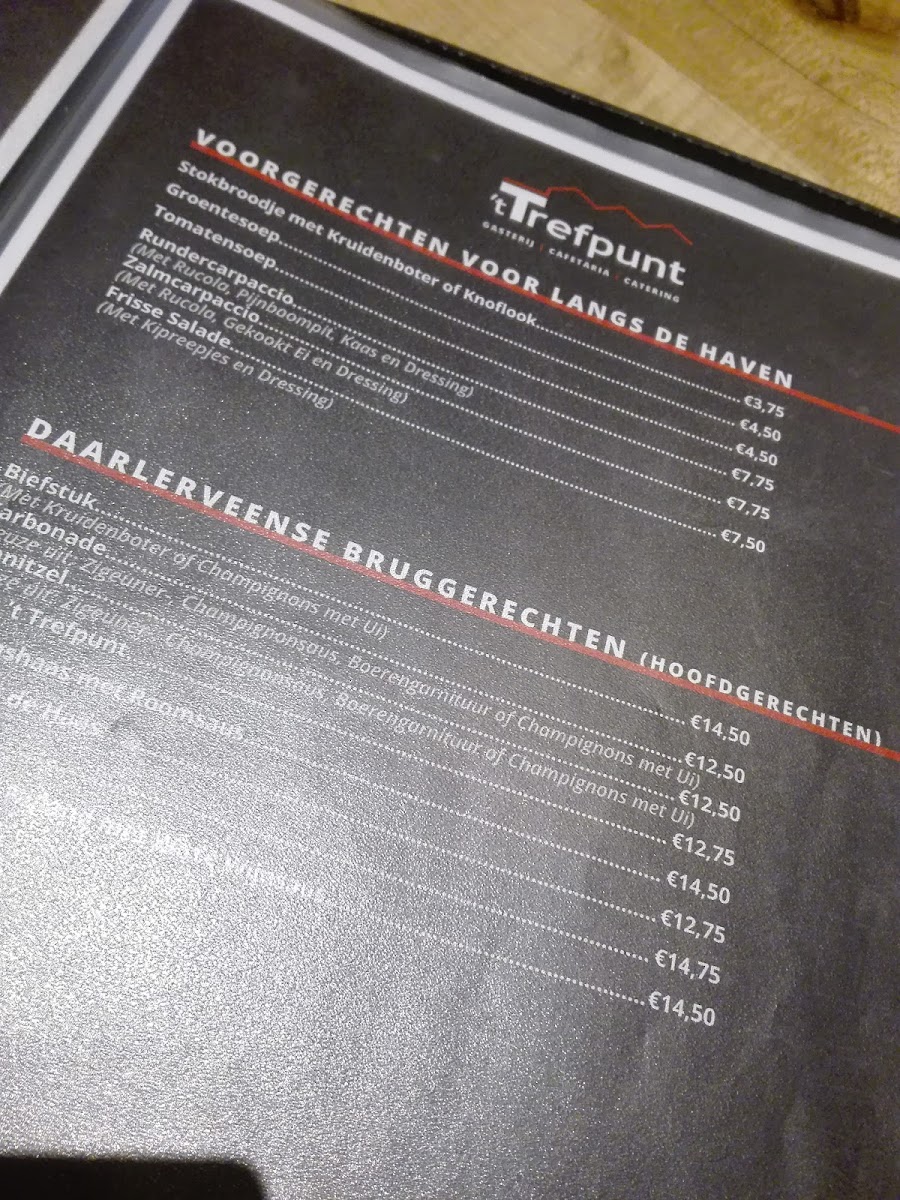 Kulturhus ’t Trefpunt offers a concise yet thoughtfully curated menu that reflects a welcoming, community-centered dining experience. Among the highlights, the Trefpintje stands out as a signature item, embodying the establishment’s emphasis on simple pleasures done right. The menu leans toward approachable, satisfying fare, with an evident focus on quality ingredients and comforting flavors rather than unnecessary complexity. Each dish feels designed to cater to a broad audience, making it an ideal spot for both casual meals and relaxed social gatherings. Overall, the selection may not be extensive, but it succeeds in delivering consistency, charm, and a sense of local character that leaves a positive, lasting impression.